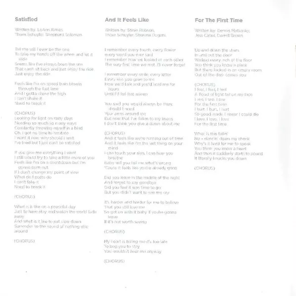 | Backing Vocals Lisa Cochran | Bass Jimmie Lee Sloas | Drums Chris McHugh | Guitar Dann Huff, Jay Joyce, Tom Bukovac | Keyboards, Programmed By Charles Judge | Producer [Additional] Charles Judge | Written-By Sherena Dugani, Steve Robson, Thom Schuyler | |||