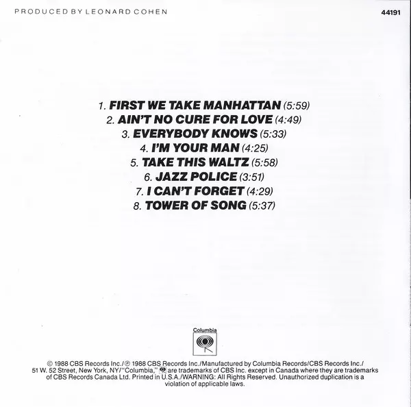 | Művész | Leonard Cohen |