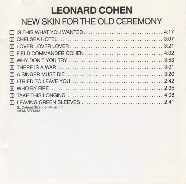 A New Skin for the Old Ceremony Cohen negyedik stúdióalbuma, amely 1974-ben jelent meg. Ez az album tartalmazza a Lover Lover című dalt is, az egyetlen Top 10-es slágerét Németországban!