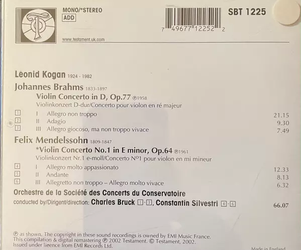 | Cím | Brahms, Mendelssohn Violin Concertos |