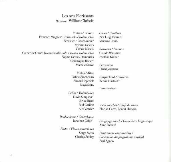 Les Arts Florissants is a renowned baroque ensemble founded in 1979 by the Franco-American conductor William Christie, who remains its musical director. Named after a short opera by Marc-Antoine Charpentier, the group specializes in the performance of Baroque music on period instru...