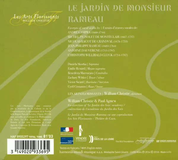 William Christie: Le Jardin De Monsieur Rameau A lemezen lévő változat CD - standard kiadás. Ez a különleges kiadás - Európa a kiadó által Harmonia Mundi év 27. július 2018. Album műfajok között Klasszikus zene és Barokk zene.