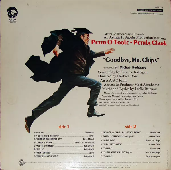 | Művész | John Williams | Petula Clark | Leslie Bricusse | Peter O'Toole |