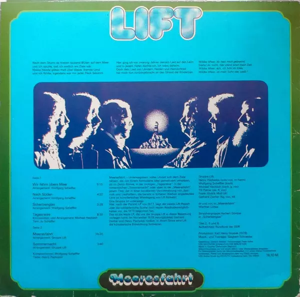 Lift is a German rock band that was formed in Dresden in the early 1970s. They are known for their progressive rock style, which incorporates elements of classical music and jazz, along with more traditional rock sounds. Lift was part of the East German music scene and gained popul...