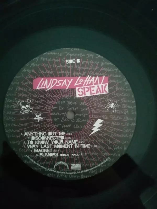 Lindsay Lohan: Speak A lemezen lévő változat bakelitlemez LP - standard kiadás. Ez a különleges kiadás - USA a kiadó által Casablanca a következőkkel együttműködve Republic Records és UMe év 6. november 2020. Album műfajok között Rock, Pop és Pop Rock.