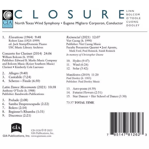 | Művész | William Bolcom | Eugene Corporon | North Texas Wind Symphony | Viet Cuong | Paul Dooley | Robert Linn | Anthony O'Toole |