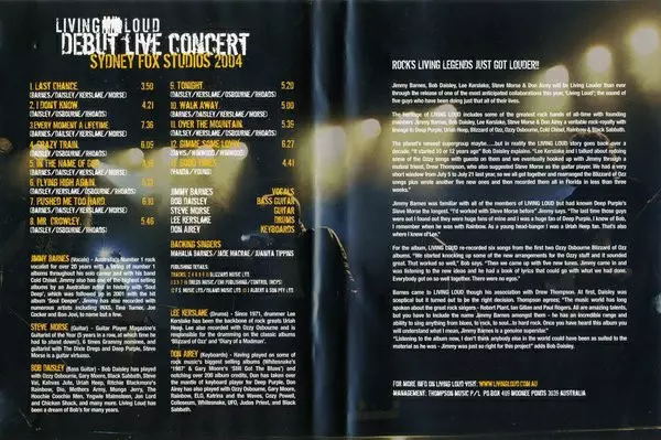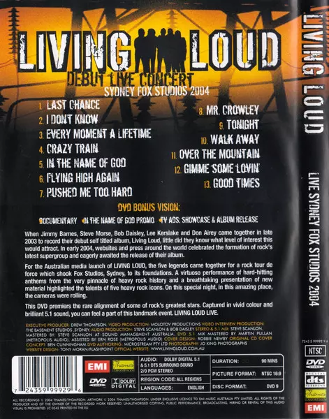 | További információk | DVD Live: Sydney Fox Studios 2004 — Documentary & DVD Bonus (Europe) |
