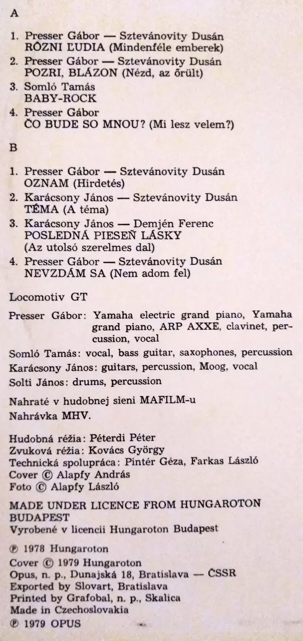 | További információk | 1979 Czechoslovakia Opus/Pepita pressing |