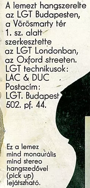 VG+ VG+ Apró hajszál karcok, kisebb karcolások, enyhén kopott borító