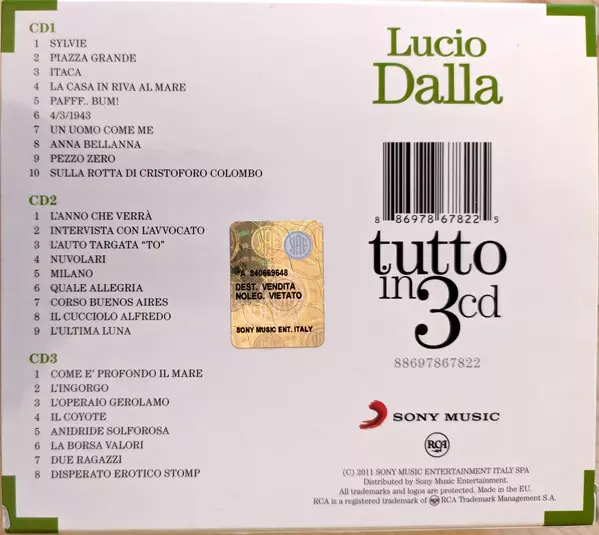 | További információk | Box Set 3CD Italian Compilation (RCA/Sony) |