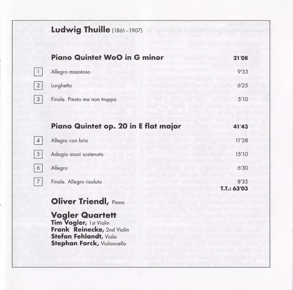 | Művész | Vogler Quartett | Oliver Triendl | Ludwig Thuille |