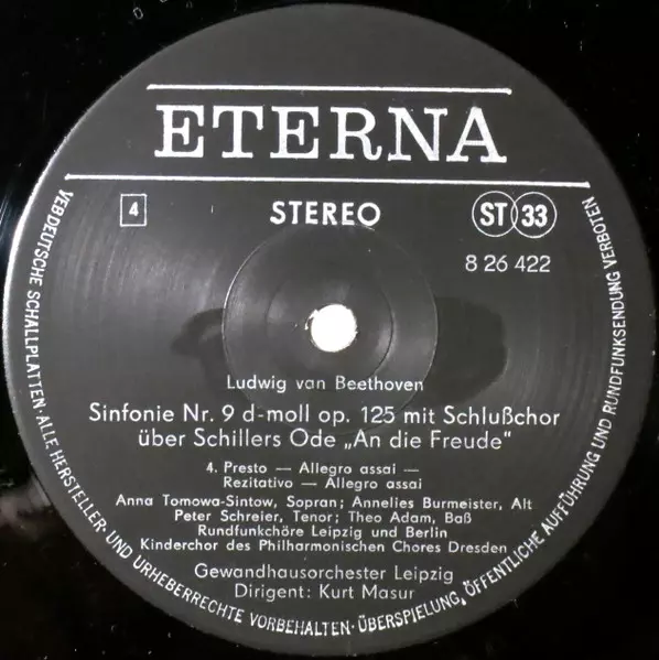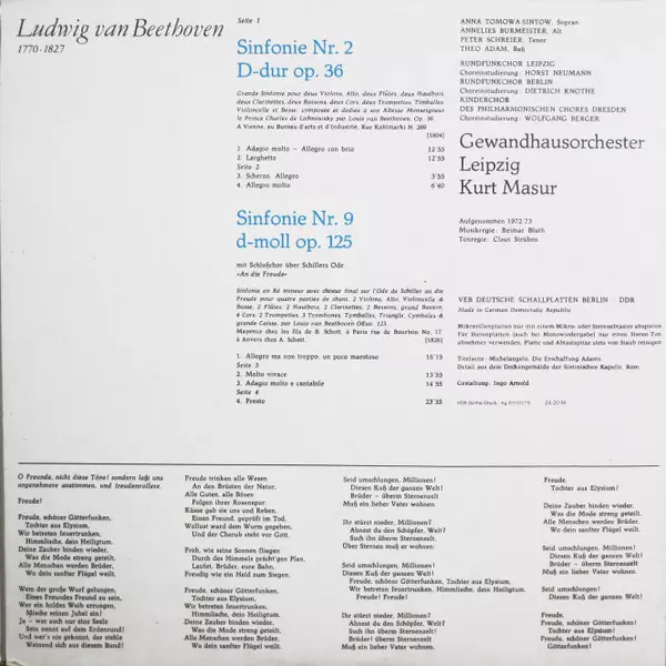 | Művész | Ludwig van Beethoven | Gewandhausorchester Leipzig | Kurt Masur | Anna Tomowa-Sintow | Peter Schreier | Annelies Burmeister | Theo Adam | Rundfunkchor Leipzig | Rundfunkchor Berlin | Kinderchor Des Philharmonischen Chores Dresden |