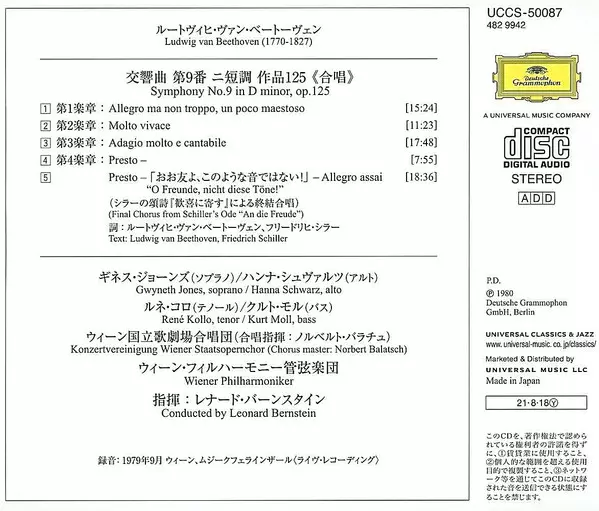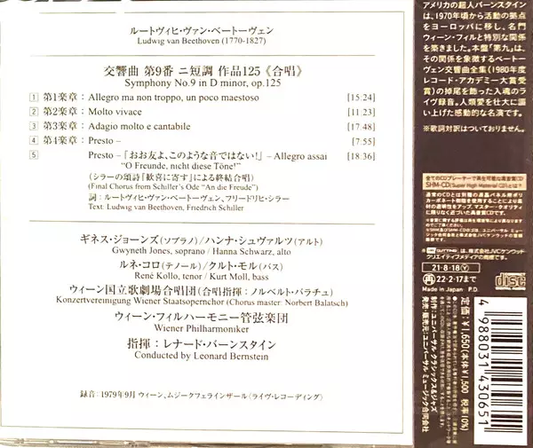 | Művész | Ludwig van Beethoven | Wiener Philharmoniker | Leonard Bernstein | Kurt Moll | René Kollo | Konzertvereinigung Wiener Staatsopernchor | Gwyneth Jones | Hanna Schwarz |