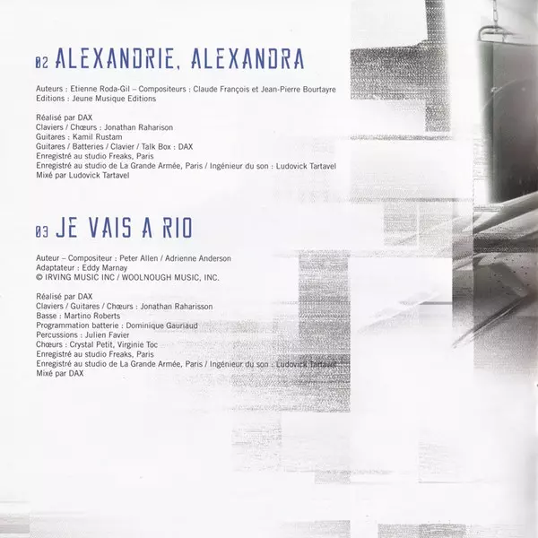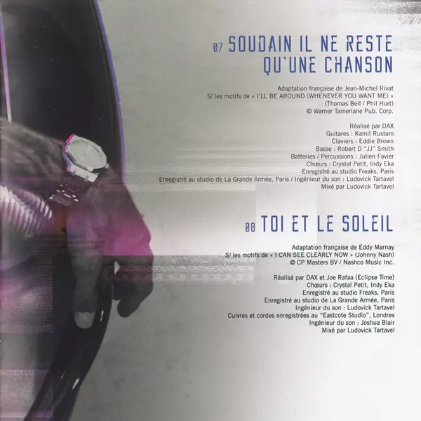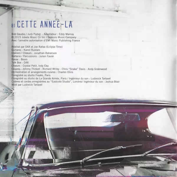 Backing Vocals Jonathan Raharison | Guitar Dax (4), Kamil Rustam | Keyboards Dax (4), Jonathan Raharison | Lyrics By Étienne Roda-Gil | Music By Claude François, Jean-Pierre Bourtayre | Producer, Drums, Talkbox Dax (4) | Recorded By, Mixed By Ludovick Tartavel
