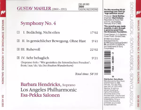 | Művész | Gustav Mahler | Los Angeles Philharmonic Orchestra | Esa-Pekka Salonen | Barbara Hendricks |