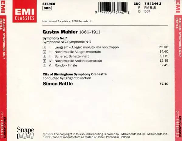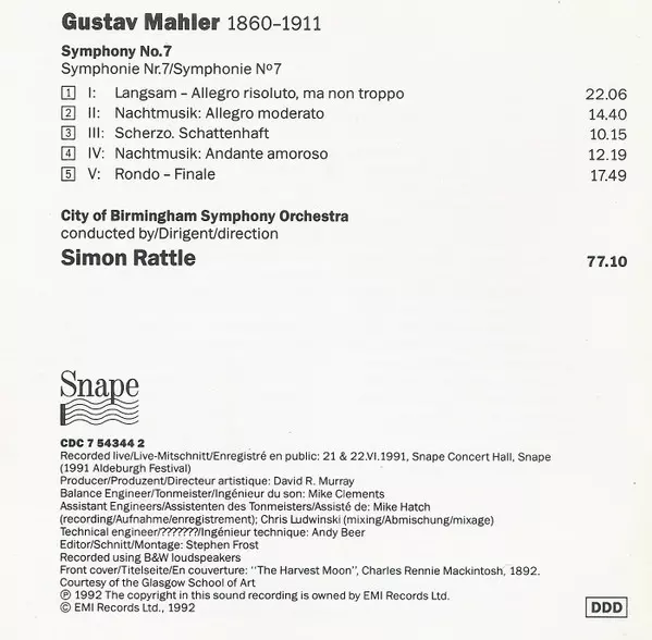 | Művész | Sir Simon Rattle | Gustav Mahler | City Of Birmingham Symphony Orchestra |