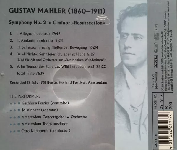 | Művész | Gustav Mahler | Otto Klemperer | Kathleen Ferrier | Jo Vincent |