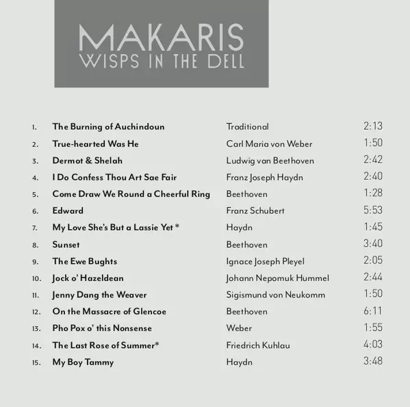 Makaris: Wisps In The Dell A lemezen lévő változat CD - standard kiadás. Ez a különleges kiadás a kiadó által Olde Focus Recordings év 4. október 2019. Album műfajok között Klasszikus zene és Folk, World, & Country.