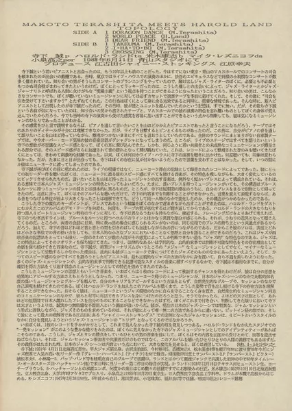 | Művész | Harold Land | Makoto Terashita |
