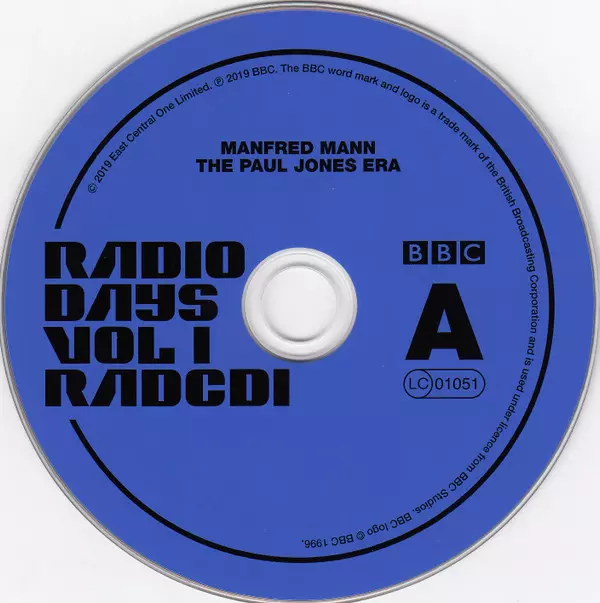 Manfred Mann: Radio Days Vol 1 / The Paul Jones Era (Live At The BBC 64-66) A lemezen lévő változat 2CD - standard kiadás. Ez a különleges kiadás - UK a kiadó által East Central One év 17. május 2019. Album műfajok között Rock, Pop, Blues és Jazz. The Paul Jones Era.