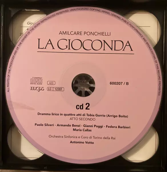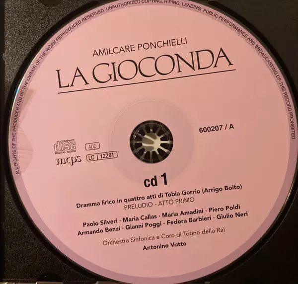 | Művész | Maria Callas | Antonino Votto | Amilcare Ponchielli | Orchestra Sinfonica Di Torino Della RAI | Fedora Barbieri | Paolo Silveri | Giulio Neri | Gianni Poggi |