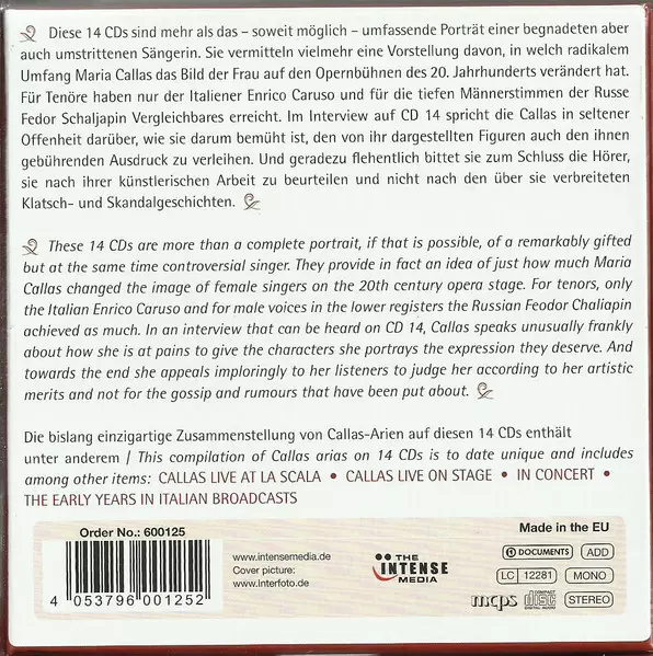 Maria Callas: The Complete Aria Collection 1949-1960 A lemezen lévő változat 14CD - standard kiadás. Ez a különleges kiadás - Európa a kiadó által The Intense Media év 7. november 2013. Album műfajok között Klasszikus zene és Opera.