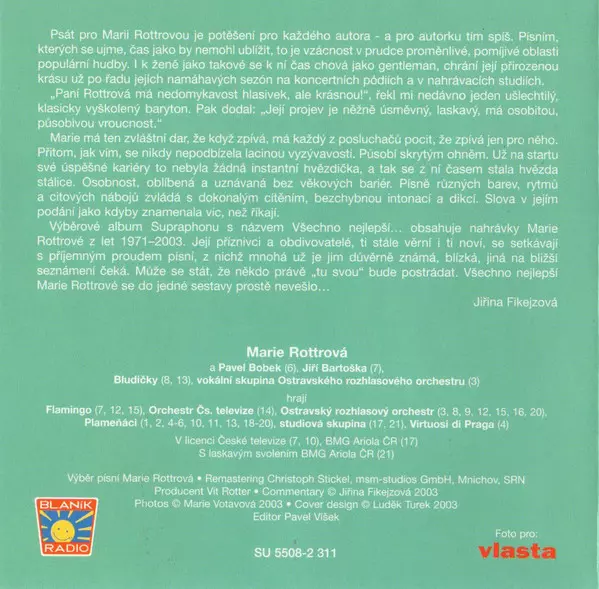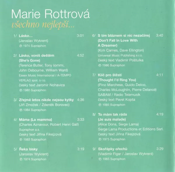 Marie Rottrová She released the album "All the Best" in 2003. The album contains thirteen tracks, including the singles "Couple of Days" and "Love Is Love". The album has a pop and rock sound and has been praised by critics.