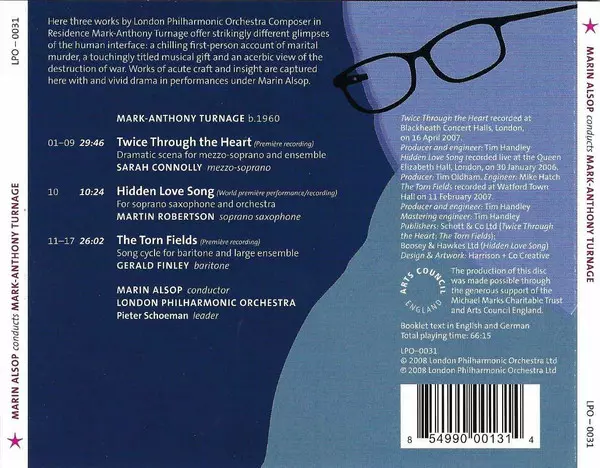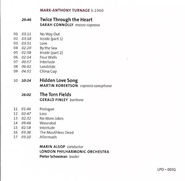 | Művész | London Philharmonic Orchestra | Gerald Finley | Marin Alsop | Sarah Connolly | Mark-Anthony Turnage | Martin Robertson |