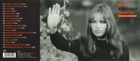 Marta Kubišová Her most recent album, Depeche (Selected Songs 1965-2019), was released in 2019 and features a collection of her greatest hits from 1965 to 2019. The album includes fan favorites such as "Flow," "By Chance," and "Life is Just a Chance," as well as new songs such as "Depeche" and "I Don't Want to Be Alone."