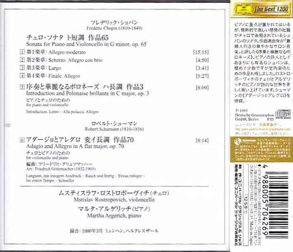 | Művész | Frédéric Chopin | Martha Argerich | Mstislav Rostropovich | Robert Schumann |