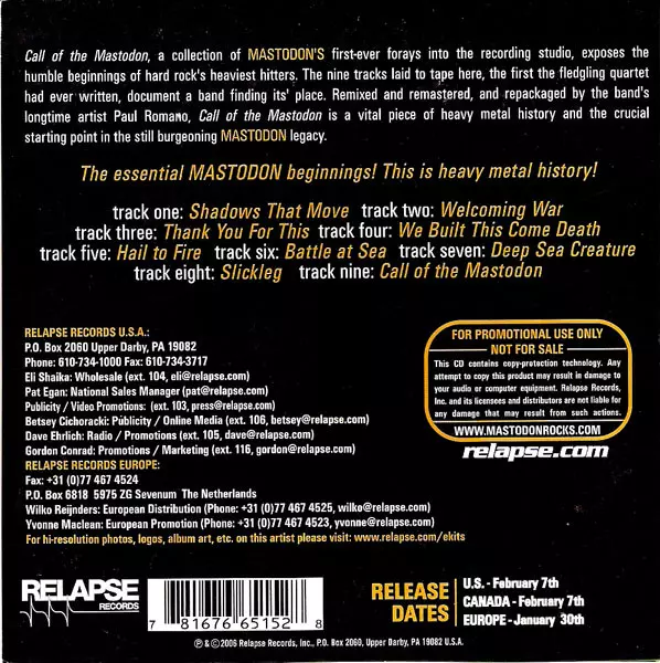 | Cím | Call Of The Mastodon |