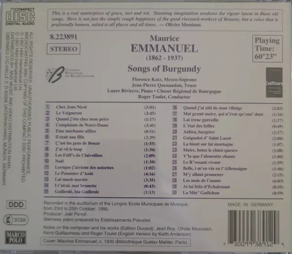 | Művész | Maurice Emmanuel | Florence Katz | Jean-Pierre Quenaudon | Laure Rivierre | Chœur Régional De Bourgogne | Roger Toulet |