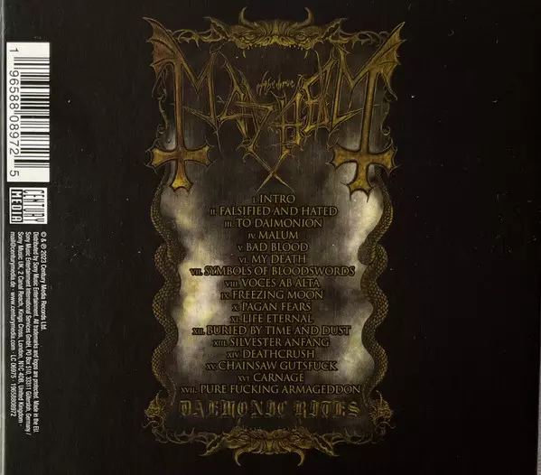 Nové živé album s názvem "Daemonic Rites" je vzrušujícím a intenzivním posluchačským zážitkem, který zachycuje energii a sílu Mayhem na pódiu. Album obsahuje nahrávky z různých měst a míst, z nichž každé má svou jedinečnou atmosféru a publikum. Mayhem v posledních letech hráli po celém světě a "Daemonic Rites" zachycuje podstatu jejich živých v...