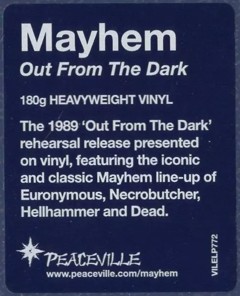 - Ukázka nahraná na začátku 90. let vyšla jako demo o několik let později - Absolutně syrový blackmetalový zvuk a absolutní pravdivost - Další raritní živák norských blackmetalových hrdinů Mayhem - Vinyl only release