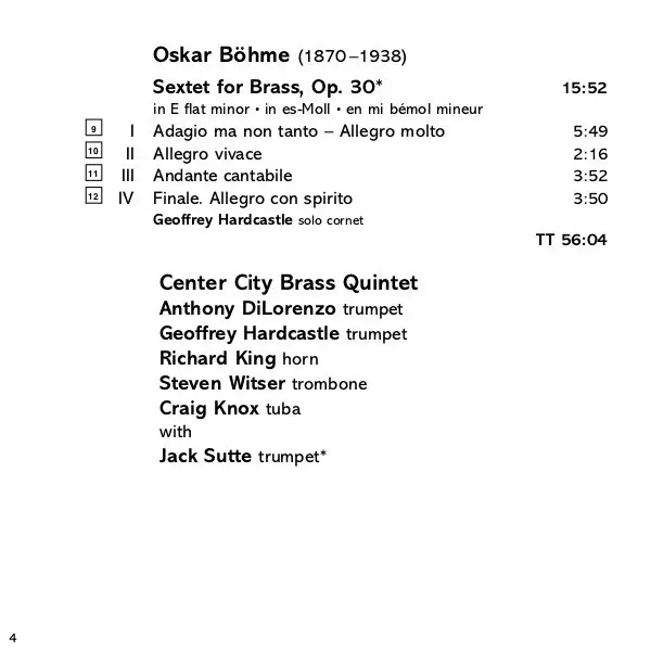 | Művész | Felix Mendelssohn-Bartholdy | Victor Ewald | Center City Brass Quintet | Oskar Wilhelmovitch Böhme |