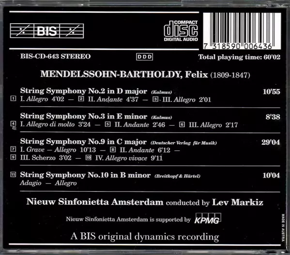 Cím | The Complete String Symphonies - Volume 1 / No.2 In D Major - No.3 In E Minor - No. 9 In C Major - No.10 In B Minor |