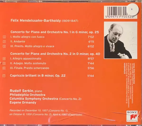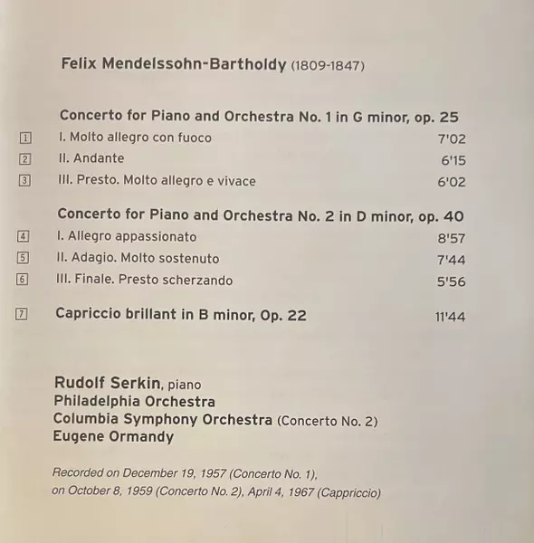 | Művész | Felix Mendelssohn-Bartholdy | Rudolf Serkin |