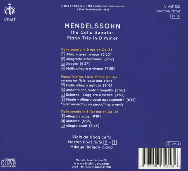 | Művész | Felix Mendelssohn-Bartholdy | Viola de Hoog | Marten Root | Mikayel Balyan |