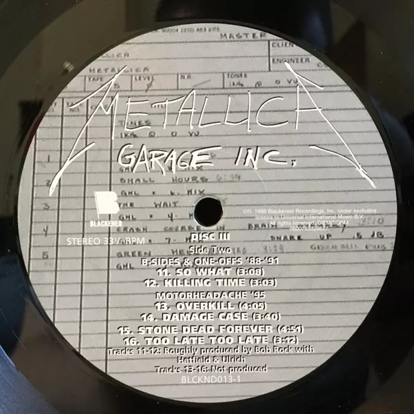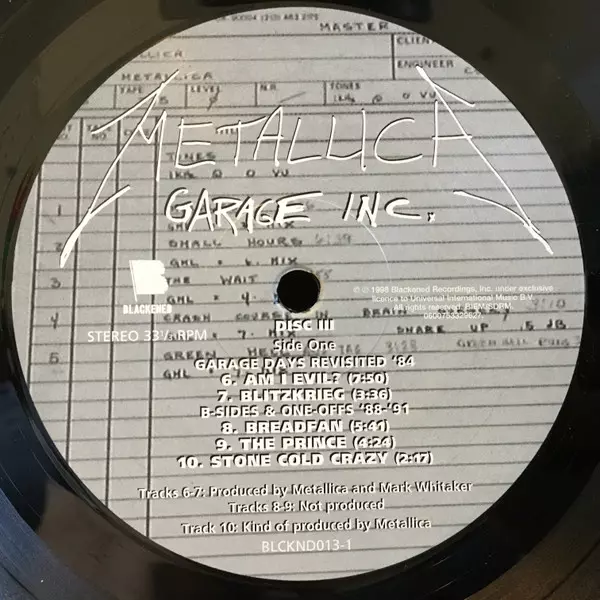 Metallica: Garage Inc. LTD A lemezen lévő változat bakelitlemez 3LP - korlátozott példányszámban kiadás. Ez a különleges kiadás - USA a kiadó által Blackened év 25. augusztus 2014.