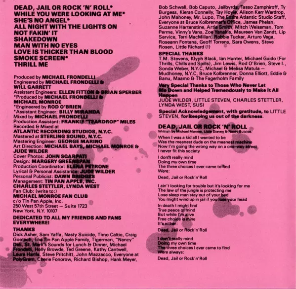 Arranged By Little Steven, Michael Monroe | Backing Vocals Gennaro (5), Kim Lesley, Nicole Hart | Bass Kenny Aaronson | Drums Anton Fig | Engineer Rod O'Brien | Engineer [Assistant] Billy Miranda | Guitar [Additional Guitars] Jimmy Rip | Keyboards Ed Roynesdal | Lead Guitar, Rhythm Guitar Phil Grande | Percussion Sue Hadjopoulos | Producer Michael Monroe | Vocals Michael Monroe | Written-By Little Steven, Michael Monroe, Nasty Suicide