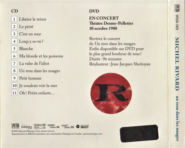 Michel Rivard: Un Trou Dans Les Nuages A lemezen lévő változat CD/DVD - standard kiadás. Ez a különleges kiadás - Kanada a kiadó által Spectra Musique év 3. április 2012. Album műfajok között Pop, Ballada és Chanson.