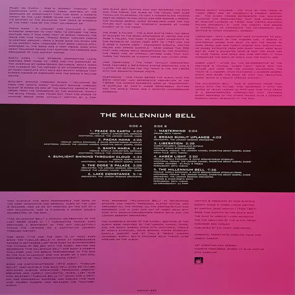 A "The Millennium Bell" Mike Oldfield huszadik albuma, amely eredetileg 1999-ben jelent meg. Az album témája az emberi történelem három különböző korszakára való reflektálás. Az album címét a harmadik évezred hajnala és Oldfield "Tubular Bells" albumai ihlették. Az album második felén található "Millennium Performance" egy 1999 szilveszterén Ber...