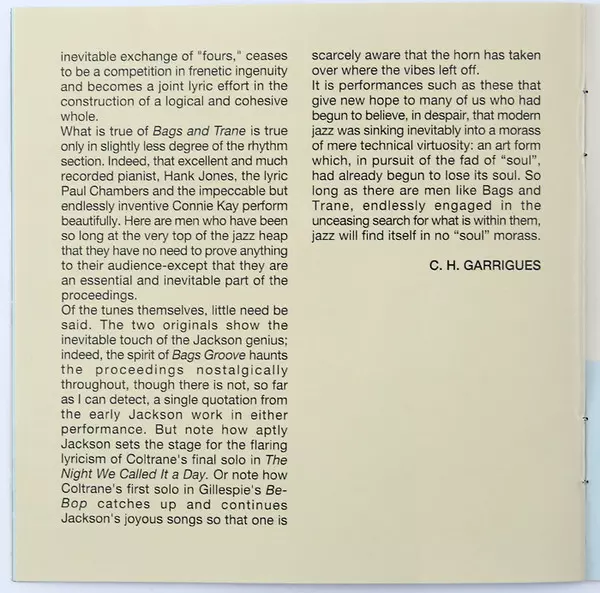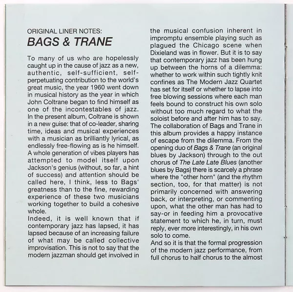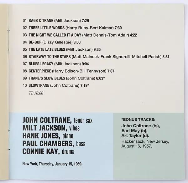 | Művész | John Coltrane | Milt Jackson |