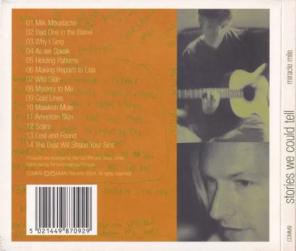 Miracle Mile: Stories We Could Tell A lemezen lévő változat CD - standard kiadás. Ez a különleges kiadás - UK a kiadó által Meme Records napján jelent meg 2004. Album műfajok között Folk, World, & Country, Akusztikus zene és Ambient.