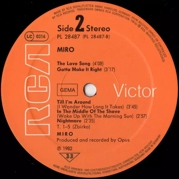 | További információk | 1982 Original Press (Germany, RCA Victor) |