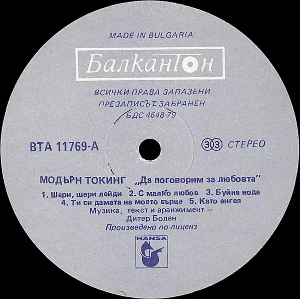 | További információk | Bulgarian 1987 Pressing (Balkan label) |