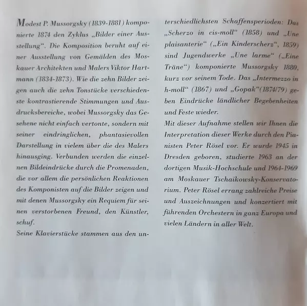 | Művész | Modest Mussorgsky | Peter Rösel |