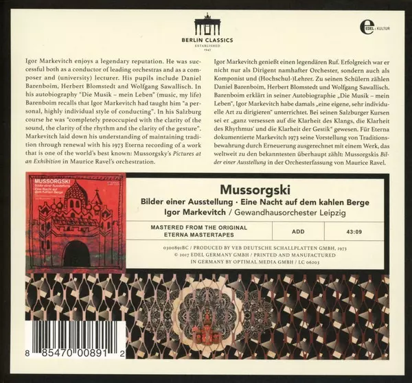 | Művész | Modest Mussorgsky | Gewandhausorchester Leipzig | Igor Markevitch |