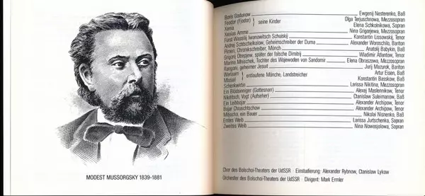 | Művész | Modest Mussorgsky | Elena Obraztsova | Evgeny Nesterenko | Bolshoi Theatre Orchestra | Mark Ermler |