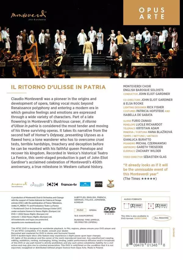 Claudio Monteverdi: Il Ritorno D'Ulisse In Patria A lemezen lévő változat DVD - standard kiadás. Ez a különleges kiadás - Európa, Egyesült Királyság és USA a kiadó által Opus Arte év 26. augusztus 2022. Album műfajok között Klasszikus zene, Barokk zene, Opera és Renaissance Music.
